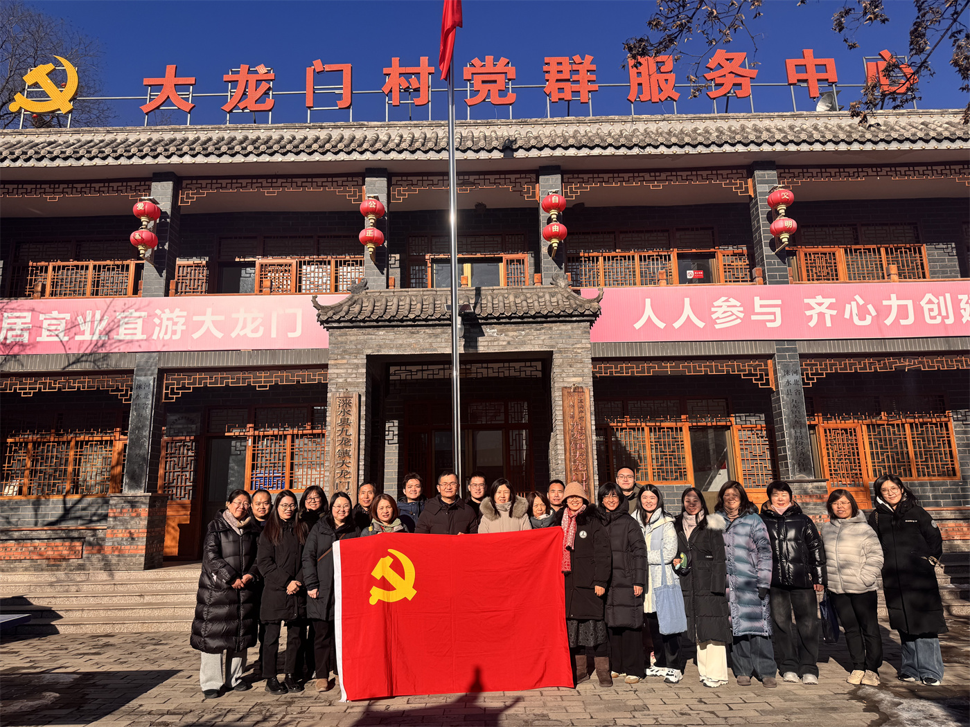 全體黨員先后前往淶水縣山南村和大龍門村交流學(xué)習(xí)。山南村錯(cuò)落分布著曹火星故居、冀熱察區(qū)黨委舊址、冀熱察挺進(jìn)軍司令部舊址等紅色遺跡,大家沿著革命先輩的奮斗足跡,深切感悟革命年代先輩們艱苦斗爭(zhēng)、無(wú)私奉獻(xiàn)的崇高精神,深入了解當(dāng)?shù)貙⒓t色資源保護(hù)利用與鄉(xiāng)村發(fā)展有機(jī)融合的實(shí)踐路徑,在村廣場(chǎng)全體黨員整齊列隊(duì)、莊重肅立,在鮮紅的黨旗下重溫入黨誓詞,并齊聲高唱《沒有共產(chǎn)黨就沒有新中國(guó)》,以鏗鏘誓言和嘹亮歌聲表達(dá)對(duì)黨的忠誠(chéng)與熱愛。下午,黨員們前往大龍門村,實(shí)地調(diào)研和美鄉(xiāng)村建設(shè)成果,該村依托“大龍門城堡”古關(guān)隘的歷史文化資源和生態(tài)優(yōu)勢(shì),大力發(fā)展精品民宿和鄉(xiāng)村旅游,并結(jié)合藝術(shù)寫生基地、微短劇拍攝基地等新業(yè)態(tài),有效盤活鄉(xiāng)村資源、帶動(dòng)村民增收。大家實(shí)地查看村容村貌整治、基礎(chǔ)設(shè)施提升和特色產(chǎn)業(yè)培育等情況,深入交流當(dāng)?shù)卦谕七M(jìn)農(nóng)文旅融合、實(shí)現(xiàn)鄉(xiāng)村全面振興方面的經(jīng)驗(yàn)做法,為高質(zhì)量開展農(nóng)業(yè)農(nóng)村規(guī)劃設(shè)計(jì)工作積累了鮮活素材和實(shí)踐經(jīng)驗(yàn)。
