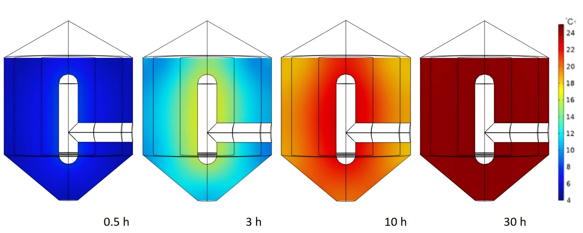 圖2 不同時刻玉米糧堆溫度分布云圖
