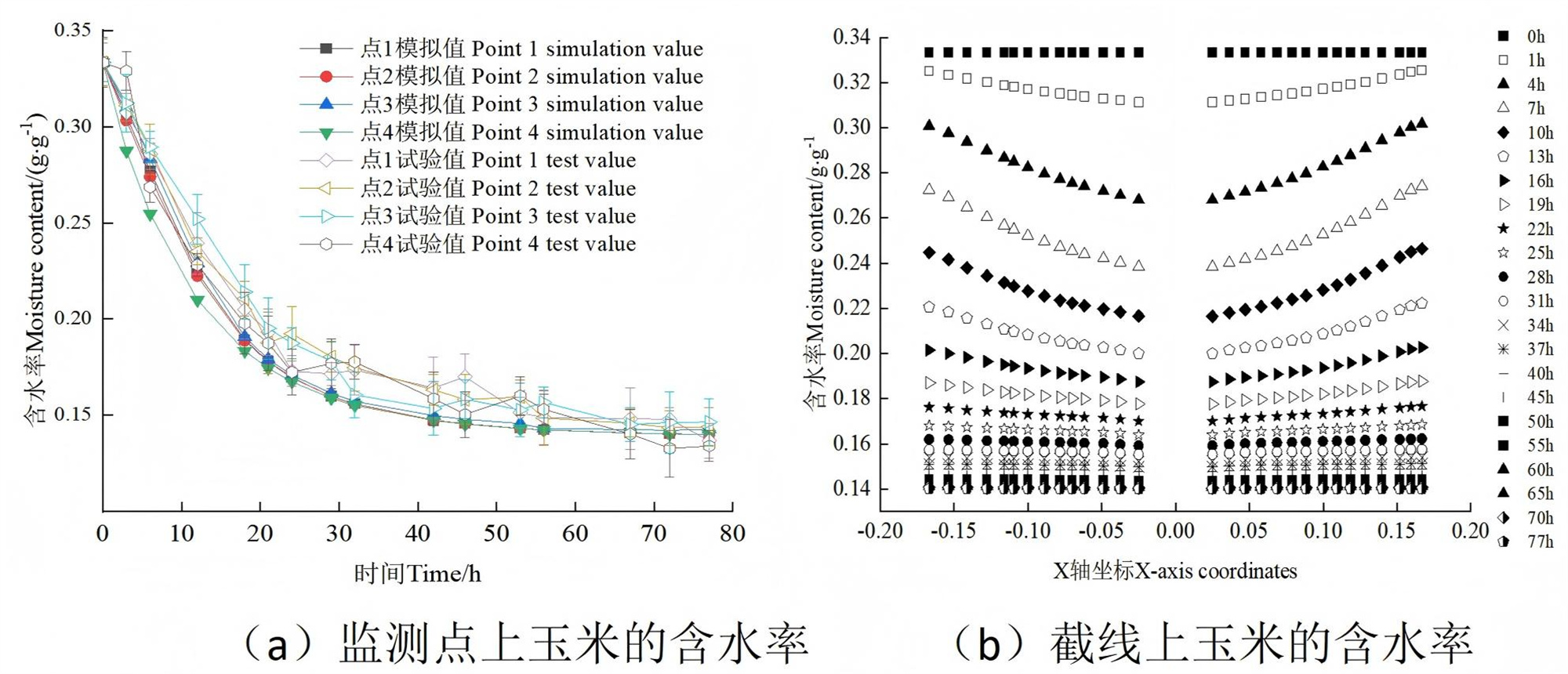 圖3 玉米糧堆含水率隨時間的變化情況